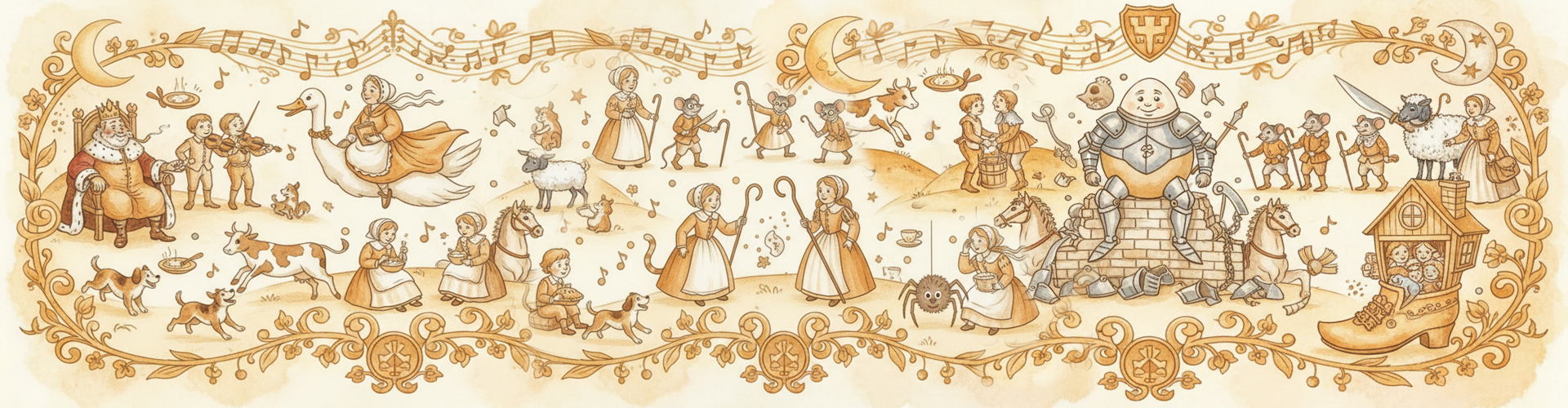 Between 2007 and 2012, producer Ian Watts and co-producer Mike Wilbury gathered 50+ musicians at Comfy Towers Recording Studios to record the definitive nursery rhyme collection — spanning 5 centuries of song across 4 double albums.